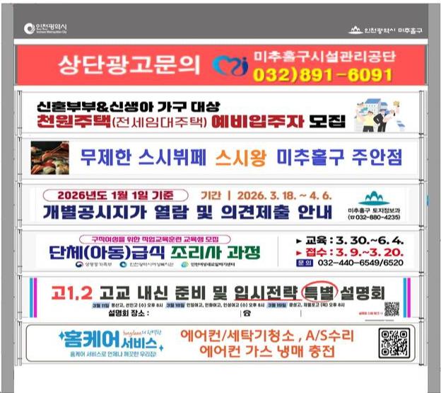 미추홀구, 현수막 디자인 규제 푼다…게시대 홍보 효과 개선 기대