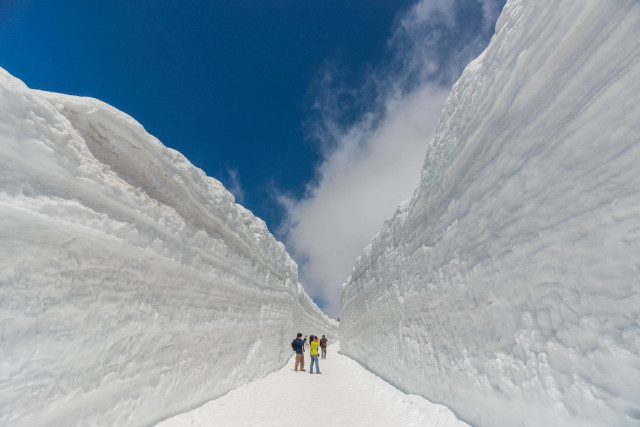 특히 해발 2450m에 위치한 무로도 지역에서는 4월 15일부터 6월 25일까지 1년에 단 두 달간만 ‘눈의 대계곡’ 설벽 체험이 가능하다. 겨우내 쌓인 눈이 도로 양옆으로 형성되며 최대 20m 높이에 달하는 설벽 사이를 직접 걸어볼 수 있어 시즌 한정 대표 콘텐츠로 높은 관심을 받고 있다.