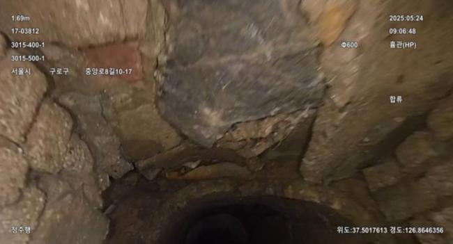 노후된 하수관로 내부 CCTV 조사 화면.구로구는 올해 서울시로부터 하수도 정비 사업을 위한 시비 약 117억 원을 확보하고 하수관로 정비와 성능 개선 등 총 11개 사업을 추진한다고 16일 밝혔다.