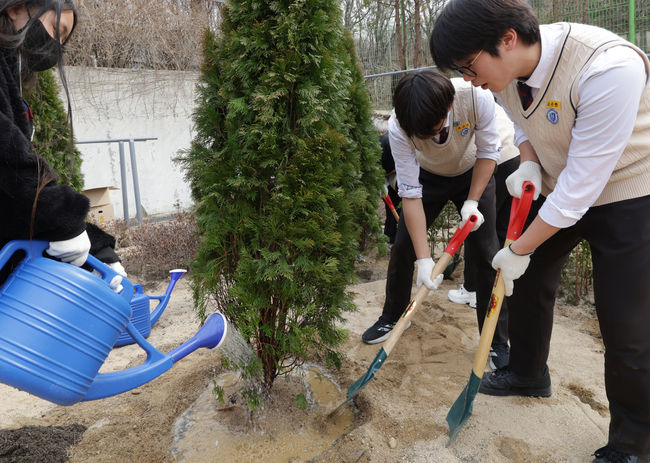 미래산업과학고등학교에서 진행한 나무심기행사 모습.서울 노원구(구청장 오승록)는 기후위기 대응과 탄소중립 실현을 위해 추진 중인 ‘100만 그루 나무심기’ 사업을 올해도 이어간다고 17일 밝혔다.