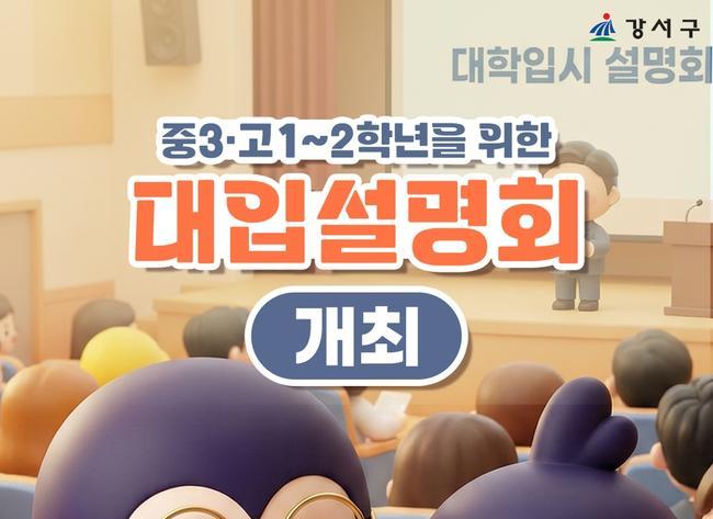 서울 강서구(구청장 진교훈)는 2028∼2030학년도 입시를 준비하는 중학교 3학년, 고등학교 1∼2학년 예비수험생 및 학부모 100여 명을 대상으로 대입 핵심 설명회를 개최한다.