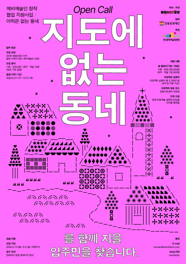 강동문화재단과 문화NOT공장이 예비 예술인의 실험적 성장을 지원하는 '예비 예술인: 아직은 없는 동네' 참여자를 5월 3일까지 모집한다.